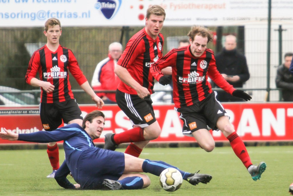 Na een half uur spelen werd de overmacht van Trias vertaald in een grotere voorsprong. Cornelis Jozeph Hofman soleerde naar de achterlijn, legde de bal terug en Richard Kok kon de 2 – 0 aantekenen. Ver in de blessuretijd van de eerste helft werd het nog erger. Bram te Bogt kwam via een 1-2-tje vrij voor Wessel Baarslag en schoot de 3 – 0 binnen.