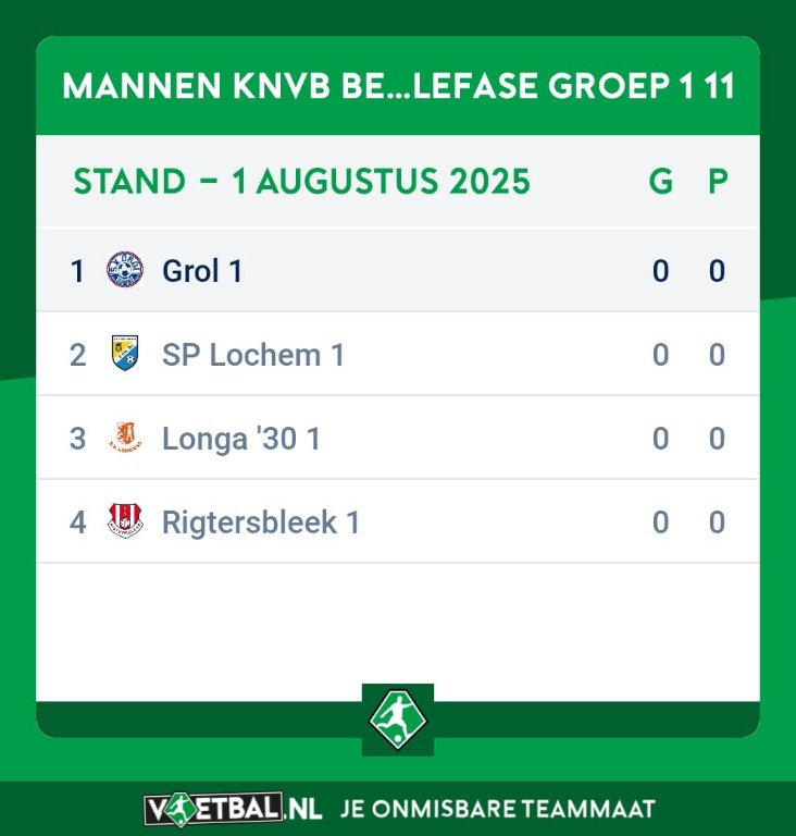 Vandaag, vrijdag 1 augustus, zijn de bekerindelingen van de A-categorie bekend gemaakt. Voor Grol 1 betekent dit een hele mooie poule met Longa '30, Lochem en Rigtersbleek. Het wedstrijdschema wordt zaterdag 2 augustus bekend gemaakt.
