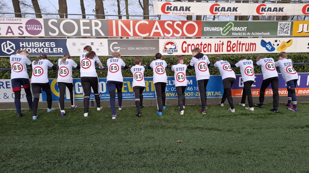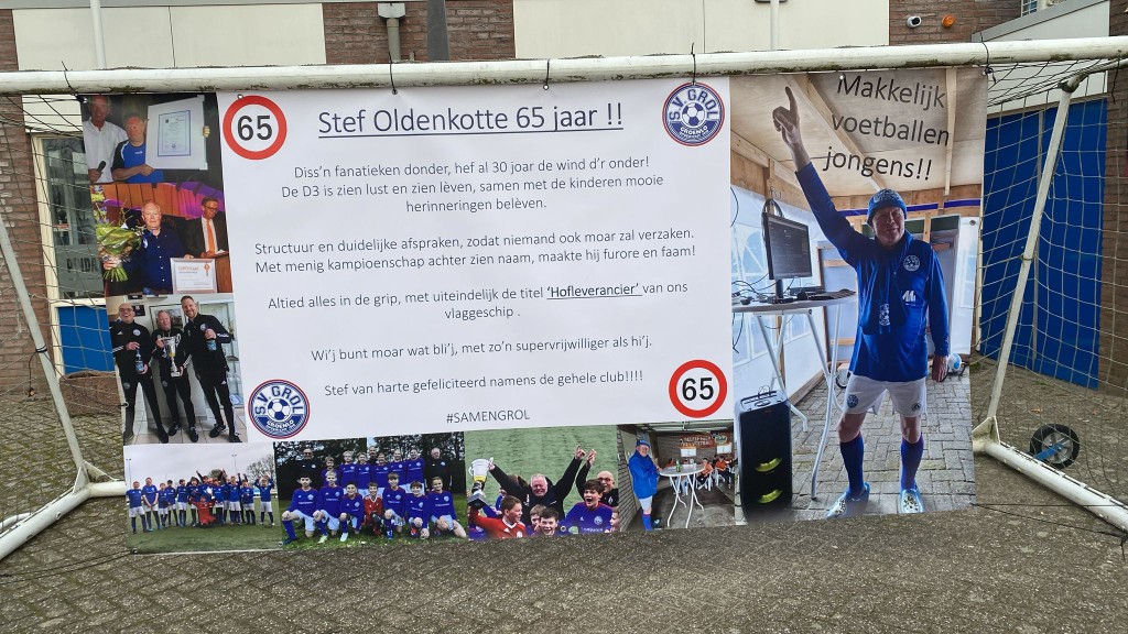 Zijn team Grol JO13-3 had samen met het voetbalbestuur een grote verrassing voor hem. Stef was namelijk de dag ervoor 65 jaar geworden en men wilde hem eens flink in het zonnetje zetten. En dat is fantastisch gelukt. Een groot spandoek in het doel en allemaal een shirtje aan met 65 er op en de bekende "Cruyffiaanse" uitspraak van Stef: Makkelijk voetballen.