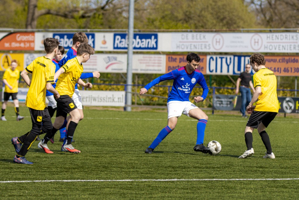 Afgelopen maandag, 2e Paasdag, was er een toernooi bij s.v. Grol voor JO15 spelend in de 4de en 5de klasse. Maar liefst 7 teams streden tegen elkaar voor de winst. In de ochtend begonnen we met 2 poulefases, na de lunchpauze waren er kruisfinales en finales. Er werden mooie, fanatieke en spannende wedstrijden gespeeld, enkele moesten zelfs beslist worden door penalty's.